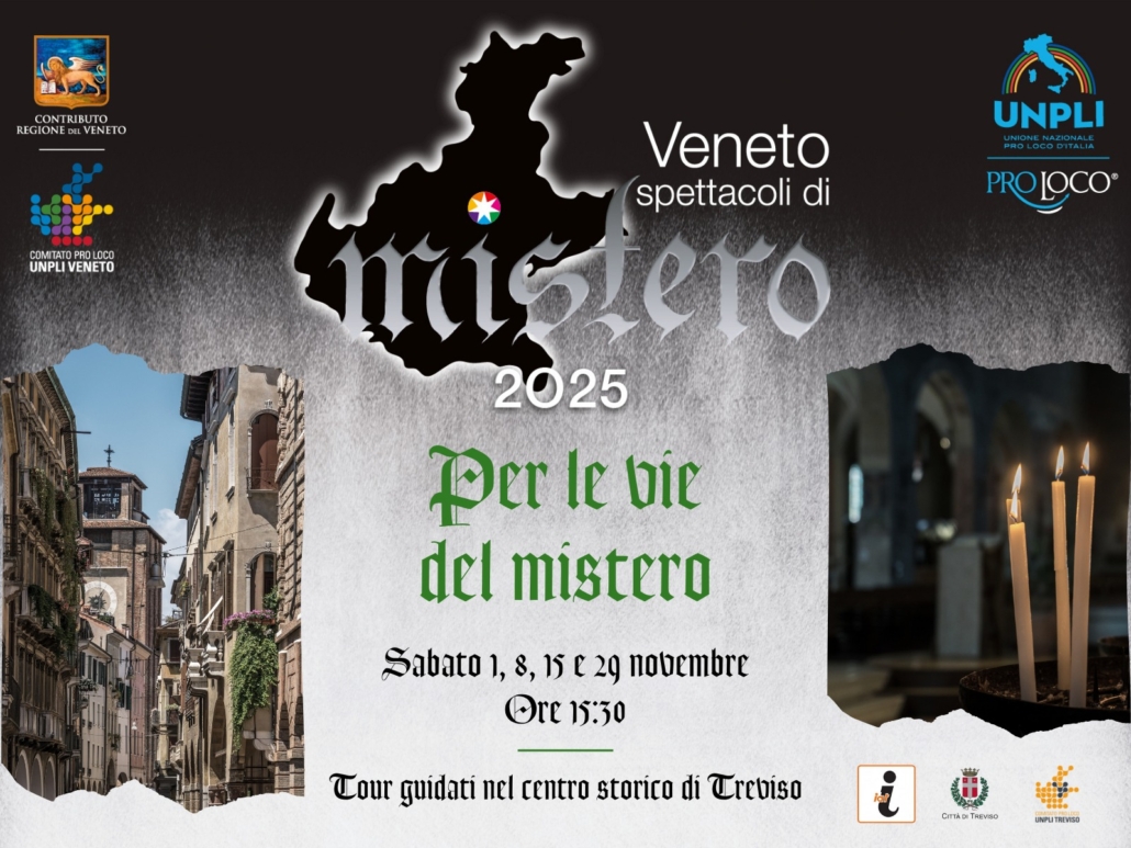 Torna “Veneto Spettacoli di Mistero” e non possono mancare “Per le vie del mistero”, i tour guidati che vi portano a scoprire leggende e misteri a Treviso. Un nuovo percorso vi aspetta, pensato ad hoc per accompagnarvi tra le viuzze e le piazze del centro storico, scoprendo nuovi racconti intriganti su fatti curiosi che sono avvenuti in passato. O forse no, chi lo sa…mistero!